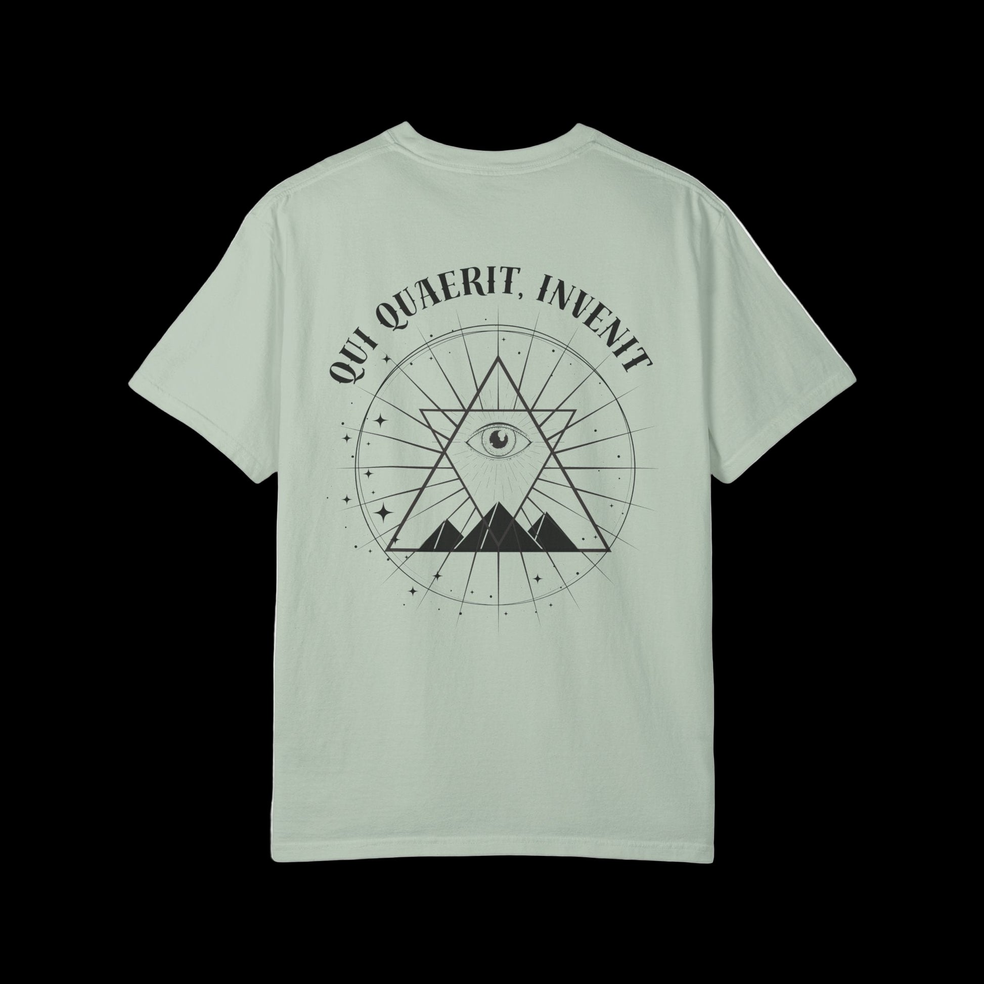 Societal Norm original design with the latin phrase "He who Seeks, finds"